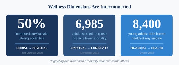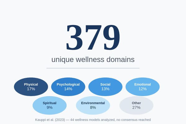 The Snapshot: If you read this week's Slightly Smarter, you got the main finding: researchers analyzed 44 wellness models and found no consensus on what wellness even includes. You got the 8-dimension framework we use and why we chose it. This is the full analysis—the history, the systematic review evidence, the competing frameworks, and why the lack of agreement actually makes wellness literacy more important. [If you want the short weekly version, Slightly Smarter is publishing a 2-minute snapshot of each topic—you can subscribe free and follow along there, too.]